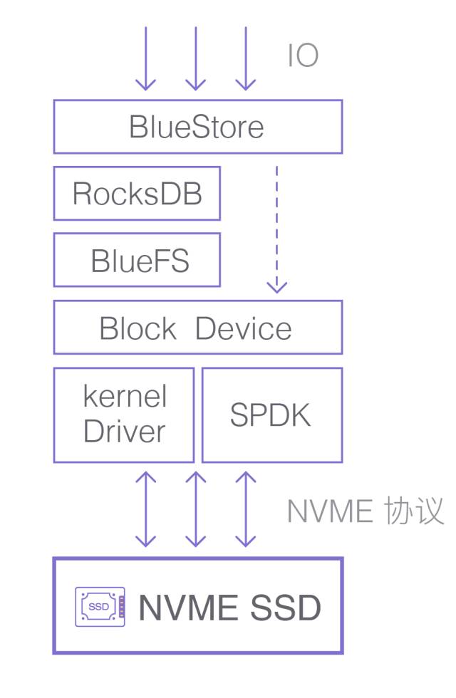 BlueStore优化:将SPDK集成至Ceph的存储引擎BlueStore,直接管理NVMe设备